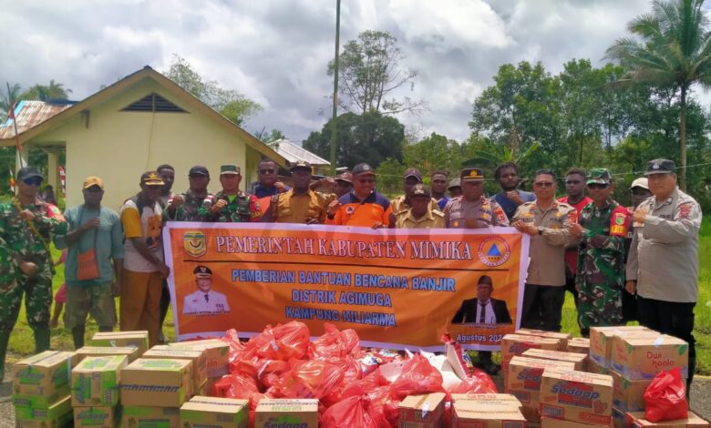 Timika, koranprogresif.id – Koramil 1710-06/Agimuga, Kodim 1710/Mimika dibawah pimpinan Danramil Lettu Inf Rumayom bersama Badan Penanggulangan Bencana Daerah (BPBD) Kab. Mimika langsung melakukan peninjauan dan memberikan bantuan sembako kepada masyarakat yang terdampak banjir akibat hujan intensitas tinggi di Kp. Faka Fuku dan Kp. Masasimamo Distrik Agimuga, Kab. Mimika, Selasa (20/08/2024).