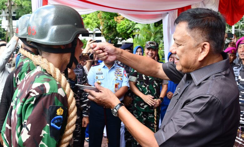 Manado || Koranprogresif.id, 20 November 2024 Gubernur Sulawesi Utara (Sulut) Olly Dondokambey bersama Komandan Komando Pembinaan Dokrin, Pendidikan Dan Latihan (Dankodiklatal) Letjen TNI Marinir Nur Alamsyah menyambut serta melepas kirab Siswa Pendidikan Pertama Tamtama (Dikmata) TNI AL Angkatan 44 Gelombang 2 T.A 2024 yang akan menempuh pendidikan di Satuan Pendidikan 4 (Satdik 4) Manado Kodiklatal yang berada di Pinenek, Likupang Minahasa Utara. Rabu (20/11)