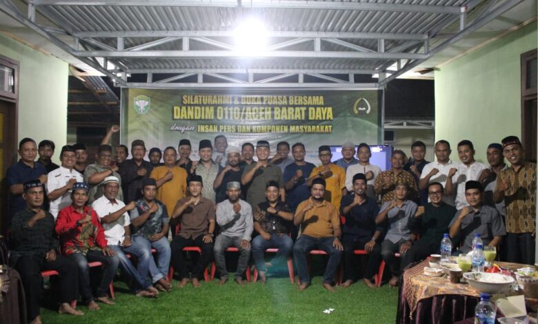 Abdya || Koranprogresif.id, Kodim 0110/Aceh Barat Daya, satuan jajaran Korem 012/TU, menggelar acara silaturahmi dan buka puasa bersama dengan insan pers serta komponen masyarakat (Komas) di wilayah setempat. Acara berlangsung di halaman kediaman Dandim di Desa Pasar, Kecamatan Blangpidie, pada Jumat (21/3/2025) petang.