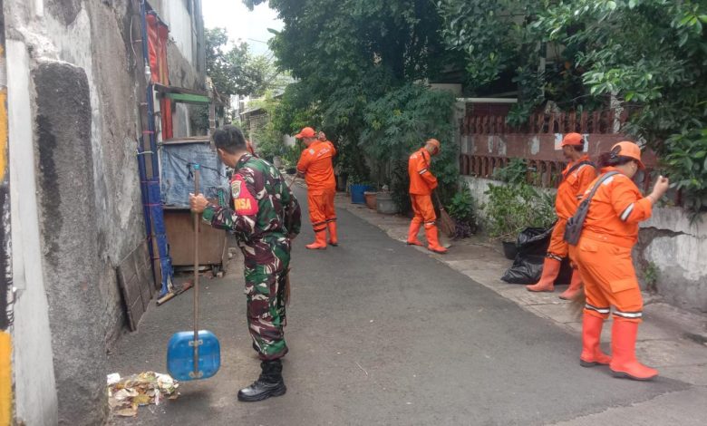 Bersama PPSU, Babinsa Koramil 01/Tamansari Pimpin Kerja Bakti