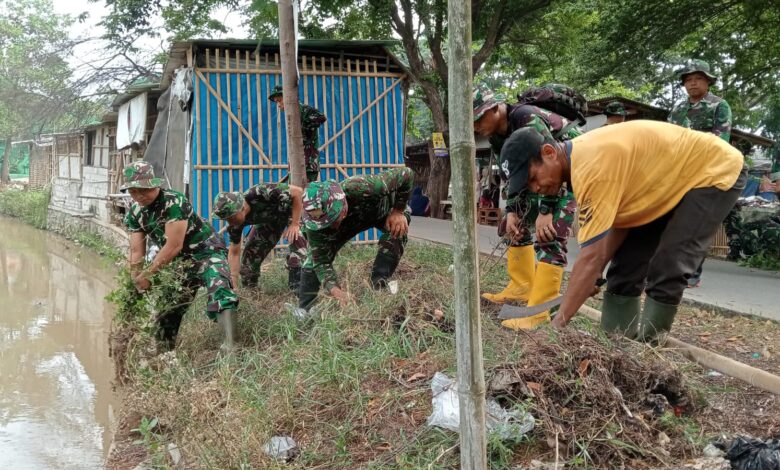 Bersama warga kodim Tigaraksa Karyabakti bersihkan saluran irigasi