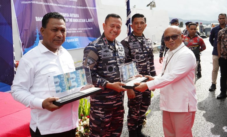 Ambon,- Komandan Pangkalan Utama TNI Angkatan Laut (Danlantamal) IX Ambon Brigadir Jenderal TNI (Mar) Suwandi, S.A.P., M.M., mengikuti Pelepasan Tim Ekspedisi Rupiah Berdaulat (ERB) 2025 yang diselenggarakan oleh Bank Indonesia Provinsi Maluku, bertempat di Dermaga Irian Lantamal IX Ambon, Halong, Baguala, Kota Ambon, Maluku, Jumat (01/08/2025).