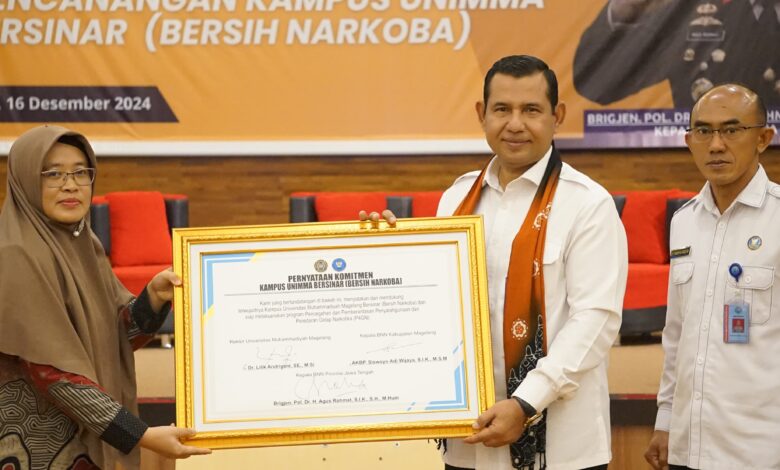 MAGELANG || Koranprogresif.id – Kepala BNN Provinsi Jawa Tengah, Brigjen Pol. Dr. H. Agus Rohmat, S.IK, SH, M.Hum melaksanakan sekaligus memberikan kuliah umum dan deklarasi Kampus Bersinar di Universitas Muhammadiyah Magelang pada Senin (16 Desember 2024).