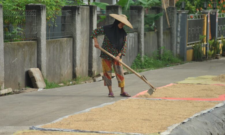 Bu Edah mengaku selama ini kesulitan mencari tempat menjemur gabah karena keterbatasan lahan. Namun, dengan adanya jalan beton yang baru selesai dibangun, ia kini bisa memanfaatkan permukaan jalan yang luas dan rata sebagai tempat menjemur hasil pertaniannya.