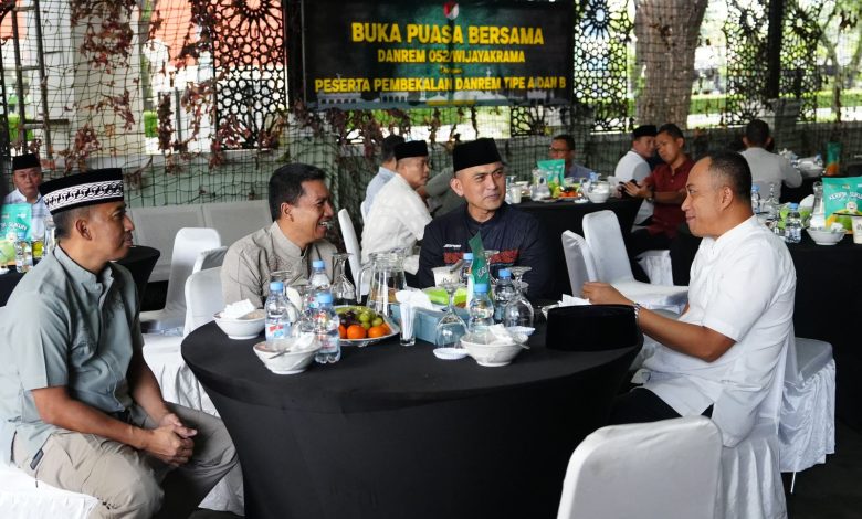 Tangerang – Momentum bulan suci Ramadhan dimanfaatkan Korem 052/Wijayakrama untuk mempererat kebersamaan sekaligus menumbuhkan kepedulian sosial. Hal tersebut terlihat dalam kegiatan **Buka Bersama dan Santunan Anak Yatim** yang digelar bersama peserta **Pembekalan Calon Danrem Tipe A dan Tipe B TA 2026**, di Makorem 052/Wkr, Kamis (5/3/2026).