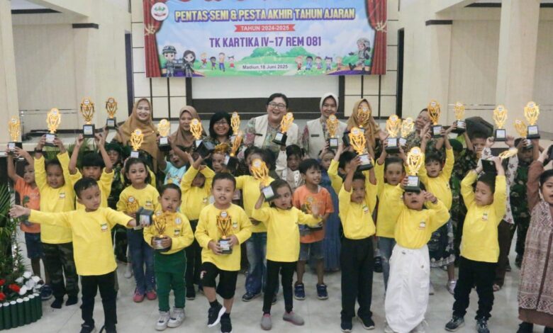 “Saya merasa sangat bangga dan bahagia melihat perkembangan anak-anak kita yang luar biasa. Mereka adalah anak-anak hebat yang telah melewati proses belajar dengan semangat, keceriaan, dan rasa ingin tahu yang tinggi,” kata Frieda dalam sambutannya yang dibacakan Sekretaris Yayasan Kartika Jaya Koordinator Korem 081 Ny. Susiana pada acara Pentas Seni dan Perpisahan TK Kartika IV-17 di Aula Jenderal Sudirman Makorem 081/DSJ, Jl. Pahlawan No. 50 Kota Madiun, Rabu (18/6/2025).