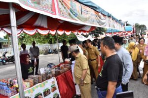 Dalam kunjungannya, Bupati Kapuas, Wiyatno, didampingi Wakil Bupati Kapuas, Dodo, meninjau berbagai stand Usaha Mikro, Kecil, dan Menengah (UMKM) yang menjajakan aneka kuliner khas Ramadhan serta produk lokal lainnya.