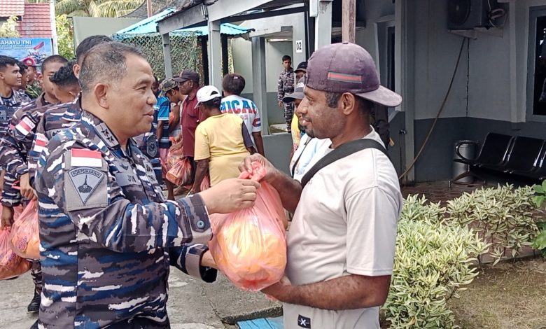 Tidak berhenti pada pembinaan satuan, Dankodaeral X juga menebarkan kasih dan kepedulian bagi masyarakat sekitar. Sebanyak 75 paket sembako diserahkan langsung kepada masyarakat Orang Asli Papua (OAP) di Kampung Samabusa wujud nyata kepedulian TNI AL untuk meringankan beban ekonomi dan mempererat jalinan kebersamaan antara prajurit dan rakyat.