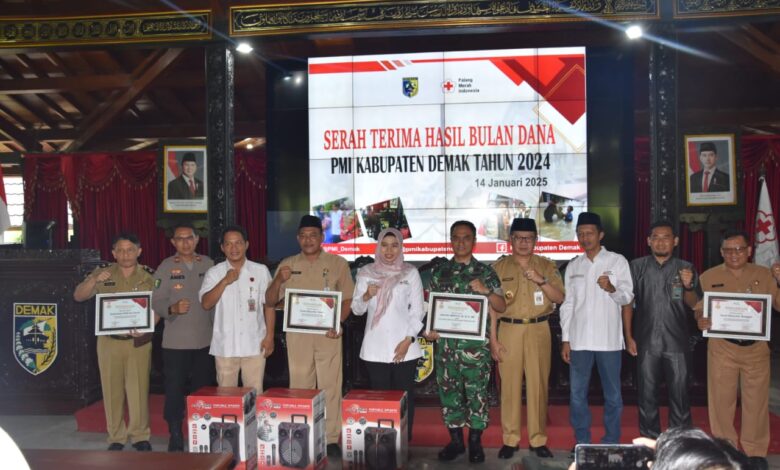 DEMAK || Koranprogresif.id – Palang Merah Indonesia (PMI) Kabupaten Demak menggelar acara serah terima hasil Bulan Dana PMI Tahun 2024 di Pendopo Satya Bhakti Praja, Kabupaten Demak dari Dandim 0716/Demak, Letkol Kav Maryoto, S.E, M.Si, M.M, selaku Ketua Bulan Dana PMI Tahun 2024 kepada Bupati Demak yang selanjutnya diserahkan kepada Ketua PMI Kabupaten Demak, Selasa (14/1/2025).