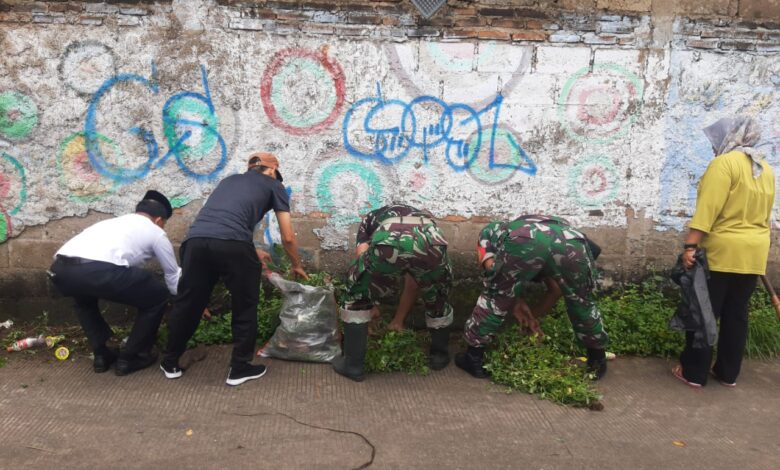 Babinsa yang terlibat langsung melakukan kerja bakti di antaranya, Peltu Yuyun, bersama 3 personil Babinsa lainya beserta komponen warga masyarakat Kelurahan Gondrong.