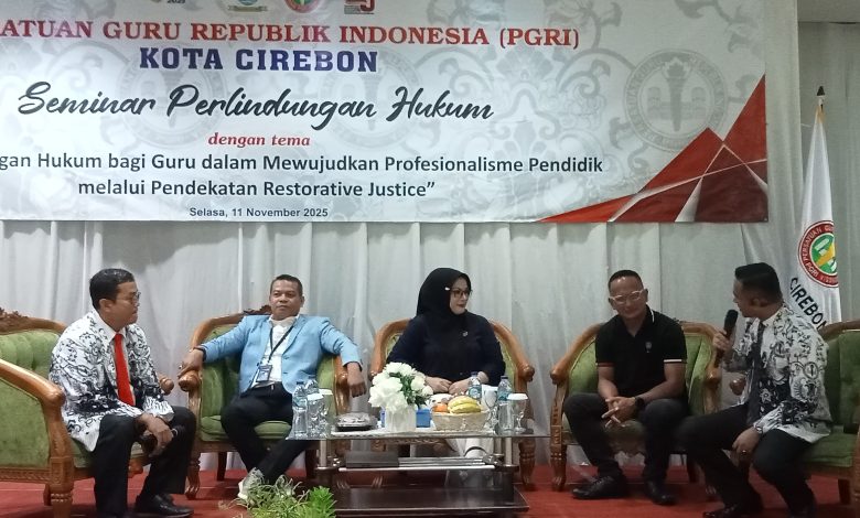 KOTA CIREBON – Koranprogresif.id – Sebagai wujud upaya memberikan pembekalan dan pemahaman hukum kepada para pendidik di Kota Cirebon, Persatuan Guru Republik Indonesia (PGRI) Kota Cirebon menggelar Seminar Perlindungan Hukum bagi Guru, dengan tema “perlindungan hukum bagi guru dalam mewujudkan profesionalisme pendidik melalui pendekatan restorative justice”. Kegiatan ini digelar di salah satu Hotel di Jl Wahidin Sudirohusodo, Kota Cirebon, Selasa (11/11/2025).