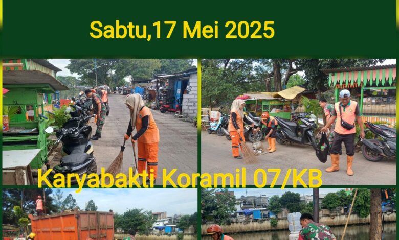Jakarta || Koranprogresif.id, Wujudkan lingkungan bersih dan sehat, Babinsa Koramil 07/KB Serma H Oloan melaksanakan Karya Bakti Pembersihan lingkungan di Jl.Tanggul Basmol Rt. 10/06 Kel. Kembangan Utara Kec. Kembangan Jakarta Barat. Sabtu (17/5/2025)