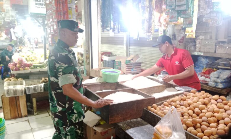 Cek Situasi Pasar, Babinsa Koramil 05/KJ Pantau Harga Sembako Serta Keamanan