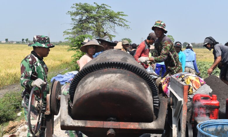 Cuaca Panas Bukan Penghalang, Tim Tukang Kodim 0716/Demak TMMD Sengkuyung Tahap IV-Warga Lanjutkan Pengecoran Jalan