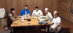 MAKAN SIANG-Mr. Dr. Ubaidillah dari IRCS (Islamic Religius Council of Singapore) atau Majelis Ugama Islam Singapura (MUIS), KH. Dr. M. Ali Abdillah, MA, Sekjen Jatman PBNU yang juga Sesepuh PDBN (Paguyuban Demak Bintoro Nusantara), serta Dr. Ginanjar, Pakar Manuskrip Islam Nusantara dari PBNU, Ustadz Noor Salim, S.Pd.I, Ketua PGSI (Persatuan Guru Seluruh Indonesia) yang juga aktifis PDBN & Ustad Imaduddin, makan siang bersama usai Ziarah. (Foto Humas PDBN).