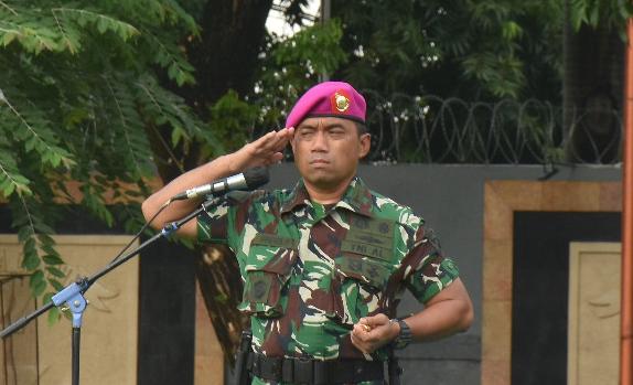Jakarta || Koranprogresif.id, Dandenma Mako Kormar Letnan Kolonel Marinir Fauzi Safi’i, S.A.P., M.Tr.Opsla. memimpin upacara bendera yang diikuti segenap prajurit dan PNS Markas Komando Korps Marinir (Mako Kormar), bertempat di Lapangan Apel Kesatrian Marinir Ali Sadikin Mako Kormar Jalan Prajurit KKO Usman dan Harun No. 40 Kwitang, Jakarta Pusat, Senin (24/02/2025).