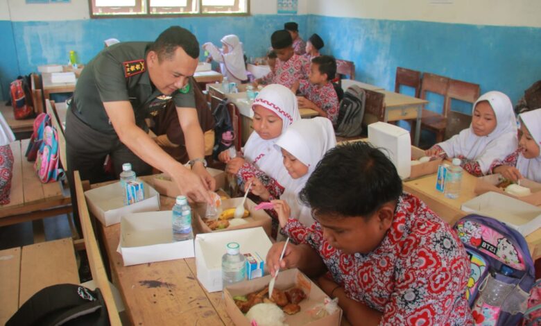 Dandim 0105/Abar Bagikan Nasi Kotak Di SD Negeri Lhok Male Kecamatan Woyla Barat Wujudkan Generasi Muda Berprestasi