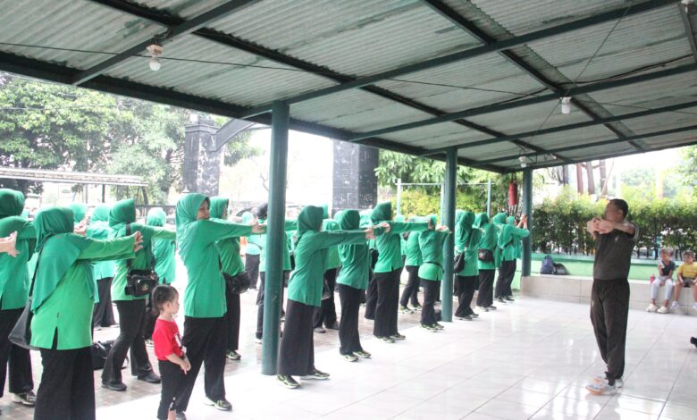 Dalam kunjungan kerja Dandim yang di dampingi Ketua Persit KCK Cabang XX Kodim 0506/Tgr PD Jaya NY. Fitria Ary Sutrisno di rangkai dengan senam Aerobik dan dilanjutkan jalan santai bersama.