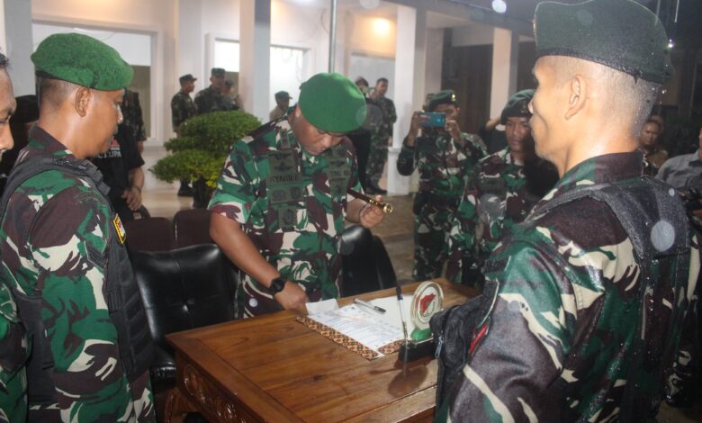 Upacara Serah Terima Estafet Pleton Beranting Yudha Wastu Pramuka Jaya (YWPJ) tahun 2024, dari Pleton Yonif 328/DGH kepada Pleton Yonif 202/TM, di SMP Negeri 5 Cikupa Kabupaten Tangerang, Selasa dinihari (17/12/2024).