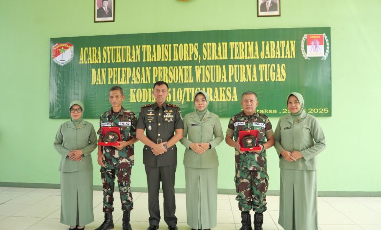 Tigaraksa – Dalam rangka penyegaran dan optimalisasi kinerja satuan, Komandan Kodim 0510/Trs Letkol Inf Yudho Setyono memimpin langsung Serah Terima Jabatan (Sertijab) Danramil 11/Pasar Kemis, Danramil 05/Balaraja dan Danramil 08/Kronjo. Kegiatan berlangsung di Makodim 0510/Trs, Selasa (29/07/2025).