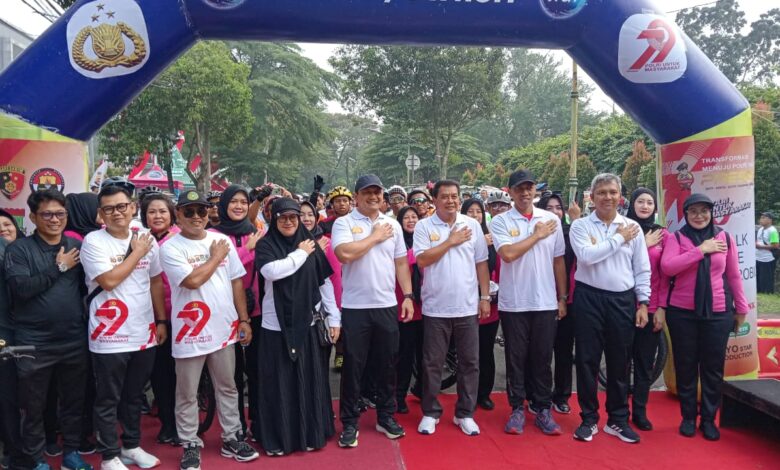 Tigaraksa || Koranprogresif.id, Dalam rangka menyemarakkan peringatan Hari Ulang Tahun Bhayangkara ke-79, Polresta Tangerang menggelar kegiatan olahraga bersama yang melibatkan unsur TNI, Polri, dan Forkopimda Kabupaten Tangerang dan warga masyarakat. Kegiatan di gelar di Lapangan Apel Mapolresta Tangerang Kabupaten Tangerang, Sabtu (28/06/2025).