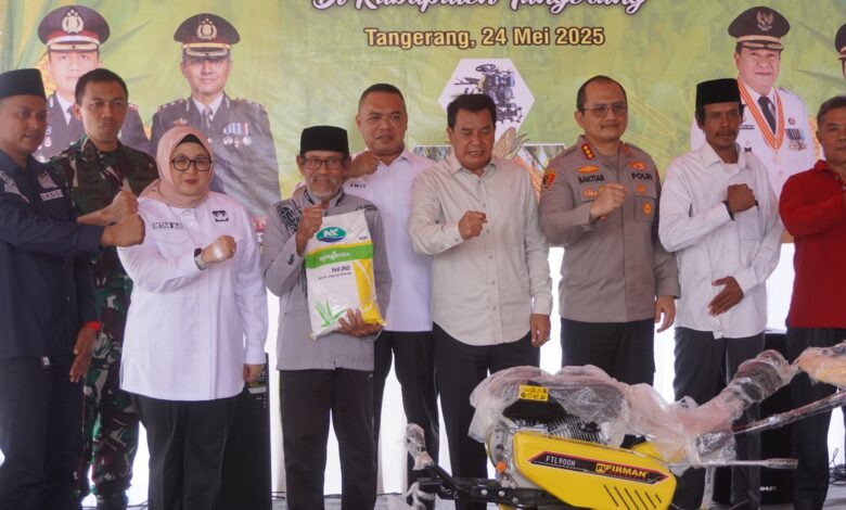 Tigaraksa || Koranprogresif.id, Pemerintah Kabupaten Tangerang bersama unsur TNI-Polri memperkuat komitmen menjaga ketahanan pangan melalui Gerakan Tanam Jagung Hibrida di Desa Buniayu, Kecamatan Sukamulya, Sabtu (24/5/2025). Dalam kegiatan itu, Kapolresta Tangerang Kombes Pol Bachtiar Joko Mujiono menyerahkan satu unit hand tractor kepada kelompok tani, sebagai bentuk dukungan konkret terhadap produktivitas petani di wilayah tersebut.