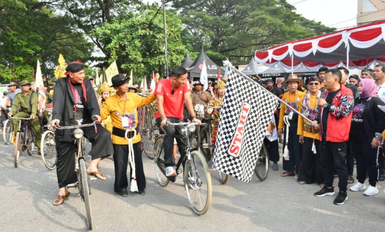 PONOROGO || Koranprogresif.id – Komandan Kodim 0802/Ponorogo, Letkol Inf Dwi Soerjono mengikuti kegiatan Parade Sepeda Tua Nusantara ke-4 Gowes, bertempat di Stadion Batoro Katong Jl. Pramuka, Kelurahan Nologaten Kacamatan/Kabupaten Ponorogo, Minggu (22/06/2025).