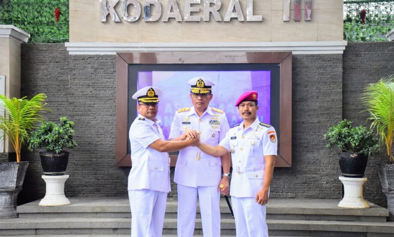 Komandan Komando Daerah Angkatan Laut (Dankodaeral) III Laksamana Muda TNI Uki Prasetia, S.T., M.M. memimpin serah terima jabatan Asisten Potensi Maritim (Aspotmar) Dankodaeral III di lobby selasar Makodaeral III, Jl. Gunung Sahari No. 2 Ancol, Jakarta Utara, Selasa (19/8).