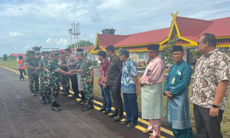 Danpuslatpurmar 9 Letkol Marinir Ricky Sandro, M.Tr., Opsla, Anggota DPRD Kabupaten Lingga Ahmat Fajar, Kepala Bandara Dabo Singkep Mustaji, dan Camat Singkep Agustiar.