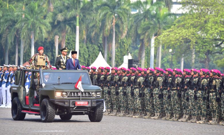 DANKORMAR BESERTA RIBUAN PRAJURIT MARINIR IKUTI ACARA PUNCAK HUT KE 79 TNI DI MONAS