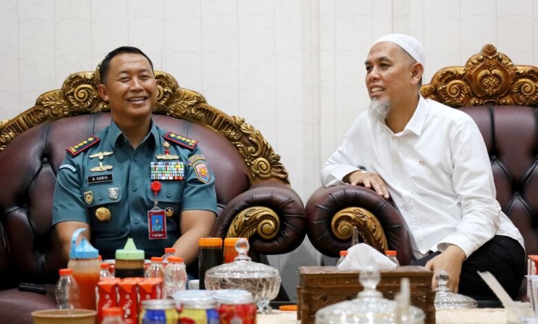 Dumai || Koranprogresif.id, Ramah serta penuh kehangatan, Walikota Dumai H. Paisal dengan didampingi Kapolres Dumai AKBP Hardi Dinata H. sambut kedatangan Danlanal Dumai Kolonel Laut (P) Abdul Haris di Kediaman Rumah Dinas Walikota Dumai, Kamis (10/4/2025).