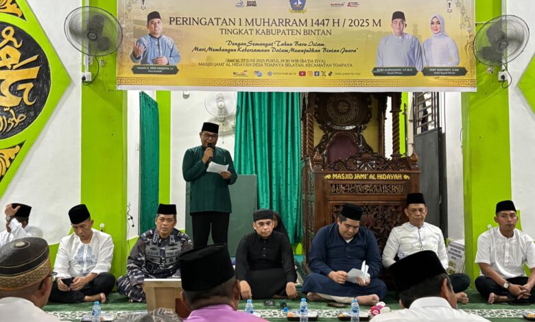 Bintan || Koranprogresif.id, Komandan Lanal Bintan Kolonel Laut (P) DR. Eko Agus Susanto, S.E., M.M., hadiri pada acara Peringatan Tahun Baru Islam 1 Muharam 1447 Hijriah yang diselenggarakan Pemerintah Daerah Bintan dengan mengangkat tema “Dengan Semangat Tahun Baru Islam, Mari Membangun Kebersamaan Dalam Mewujudkan Bintan Juara”, dan juga menghadirkan Mubalig Muda Ustadz H. Dedy Sanjaya, LC sebagai Penceramah, di Masjid Jami’ Al Hidayah Toapaya, Bintan, Jumat (27/06/2025).