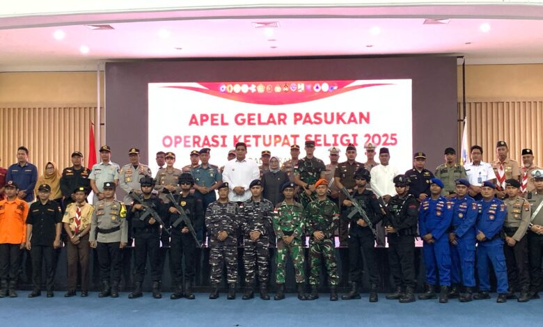 Bintan || Koranprogresif.id, Bertempat di Aula Kantor Bupati Bintan, Komandan Lanal Bintan Kolonel Laut (P) DR. Eko Agus Susanto, S.E., M.M., menghadiri Apel Gelar Pasukan Operasi Ketupat Seligi-2025 dalam rangka Pengamanan Idul Fitri 1446 H/2025 M yang dipimpin oleh Kapolres Bintan AKBP Yunita Stevani, S.I.K., M.Si., dan didampingi oleh Bupati Bintan Roby Kurniawan, S.P.W.K., Kamis (20/03/2025).