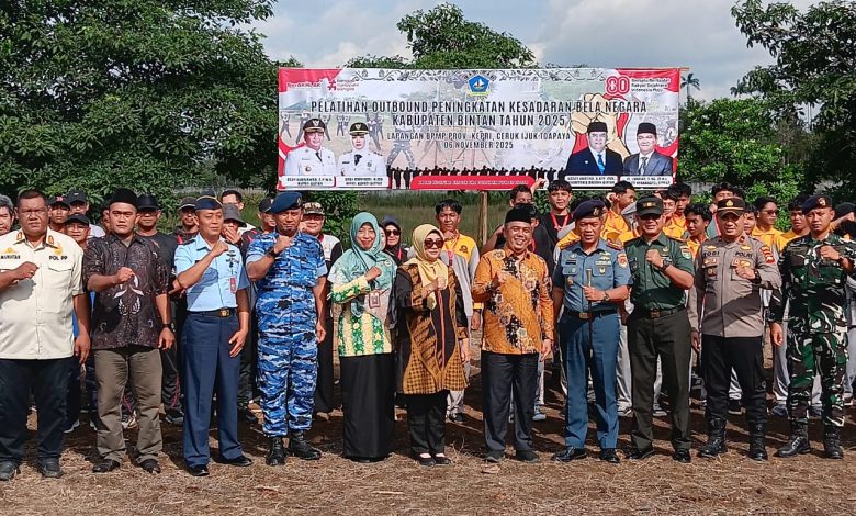 Bintan,- Komandan Lanal Bintan Kolonel Laut (P) Dr. Eko Agus Susanto, S.E., M.M., hadir pada Upacara Pembukaan Pelatihan Outbound Peningkatan Kesadaran Bela Negara Kabupaten Bintan TA. 2025, bertempat di Lapangan BPMP Provinsi Kepri, Jalan Tata Bumi KM 20 Ceruk Ijuk, Bintan, Kepulauan Riau, Kamis (06/11/2025).