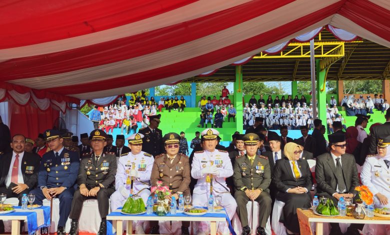Bintan,- Komandan Lanal Bintan Kolonel Laut (P) Dr. Eko Agus Susanto, S.E., M.M., hadir pada Upacara Peringatan Hari Ulang Tahun (HUT) Ke-80 Republik Indonesia yang berlangsung khidmat dan meriah, bertempat di Lapangan Bola Bukit Kerang, Kelurahan Kawal, Bintan, upacara ini dipimpin langsung oleh Bupati Bintan Roby Kurniawan, S.P.W.K., sebagai Inspektur Upacara, Minggu (17/08/2025).
