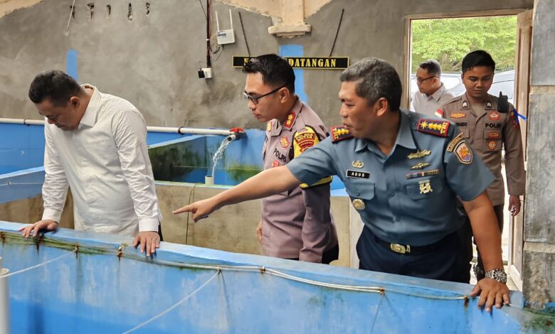 Bintan || Koranprogresif.id, Komandan Lanal Bintan Kolonel Laut (P) Eko Agus Susanto, S.E., M.M., didampingi Kapolresta Bintan AKBP Riky Iswoyo, S.I.K., M.M., Sekda Bintan Ronny Kartika, S.STP., M.M., dan Perwira Staf Lanal Bintan melaksanakan peninjauan pembibitan dan pembesaran ikan kerapu binaan Spotmar Lanal Bintan, bertempat di Jalan Selat Bintan 2, Desa Pengujan, Kecamatan Teluk Bintan, Kabupaten Bintan, Rabu (23/10/2024).