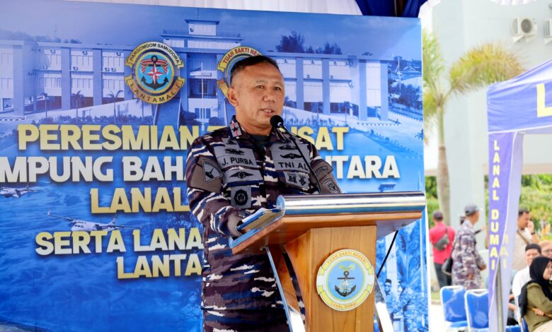 Dumai || Koranprogresif.id, Bertempat di Halaman Mako Lanal Dumai, Jalan Yos Soedarso No. 01 Kota Dumai, Komandan Lantamal l Brigjen TNI (Mar) Jasiman Purba, S.E., CHRMP., dengan didampingi Danlanal Dumai Kolonel Laut (P) Boy Yopi Hamel meresmikan Kampung Bahari Nusantara secara serentak seluruh Lanal jajaran Lantamal l secara Vicon, pada Selasa (17/12/2024).
