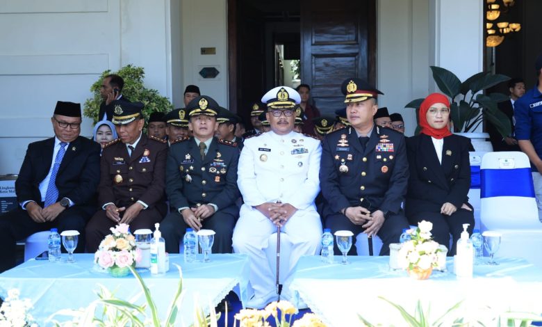 Malang, 1 Oktober 2025 , Komandan Lanal Malang, Kolonel Laut (P) Agus Haryanto, S.E., M.Tr.Hanla., M.M., CTMP., bersama jajaran Forkopimda Kota Malang mengikuti Upacara dalam rangka Peringatan Hari Kesaktian Pancasila tahun 2025 dengan tema “Pancasila Perekat Bangsa Menuju Indonesia Raya”, bertindak sebagai Irup Walikota Malang, Dr. Ir. Wahyu Hidayat, MM. Rabu (01/10/2025).