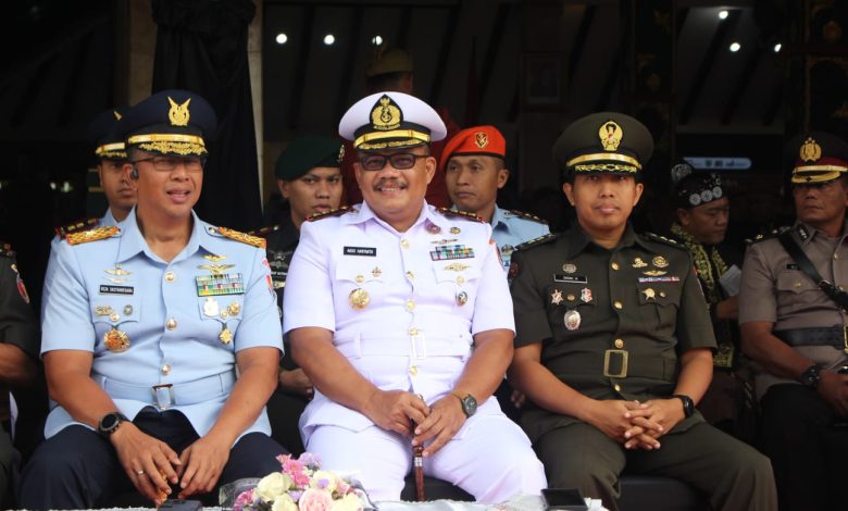 Malang || 28 November 2025. TNI AL, Komandan Pangkalan TNI AL (Lanal) Malang, Kolonel Laut (P) Agus Haryanto, S.E., M.Tr.Hanla., M.M., CTMP., bersama Forkopimda menghadiri Upacara Bendera dalam rangka memperingati Hari Jadi Ke-1265 Kabupaten Malang serta Peringatan HUT Ke-54 Korpri di Halaman Pendopo Agung Kabupaten Malang, Jalan Tugu No.1 Kelurahan Kidul Dalem, Kecamatan Klojen, Kota Malang. Jum’at (28/11/2025)