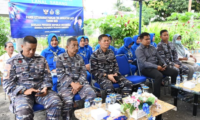 Sabang,- Komandan Pangkalan TNI Angkatan Laut (Danlanal) Sabang Kolonel Laut (P) Sadimin, S.E., M. Tr. Opsla., mengikuti kegiatan Video Conference dalam rangka Panen Ketahanan Pangan TNI AL Tahun 2025 yang digelar secara serentak diseluruh jajaran TNI AL. Kegiatan ini berlangsung di Kebun Basyarah Lanal Sabang, Jalan Malahayati, Gampong Kuta Barat, Kecamatan Sukakarya, Kota Sabang, Rabu (29/10/2025).