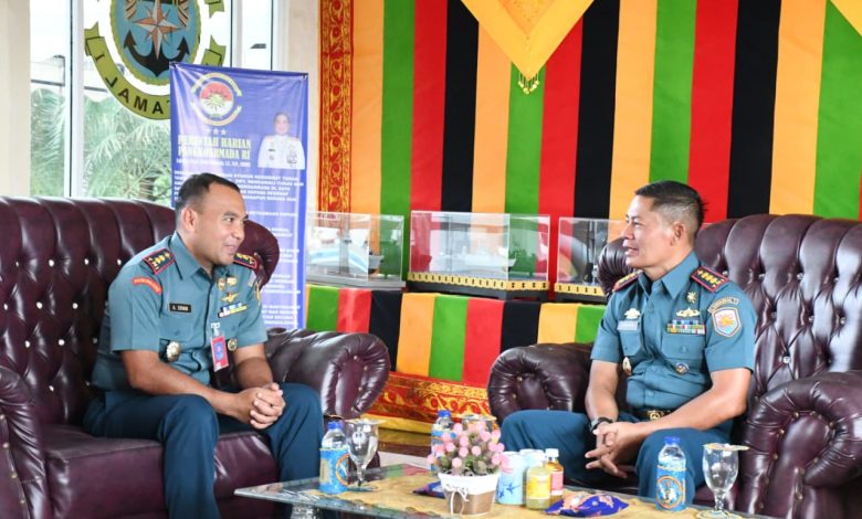 Sabang,- Komandan Lanal Sabang Kolonel Laut (P) Sadimin, S.E., M.Tr.Opsla., menerima kunjungan Danlanudal Sabang Letkol Laut (P) Ahmad Ervan Gustanto, CH., M.Tr. Sou., M.Han., di Markas Komando Lanal Sabang, Senin (25/8/2025).