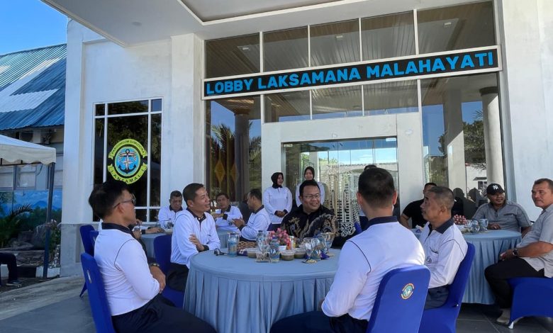 Sabang,- Komandan Lanal Sabang Kolonel Laut (P) Sadimin, S.E., M.Tr. Opsla., terima kunjungan Walikota Sabang H. Zulkifli H. Adam beserta Staf, bertempat di Mako Lanal Sabang, Jalan Yos Sudarso, Kecamatan Sukakarya, Kota Sabang, Sabtu (23/08/2025).