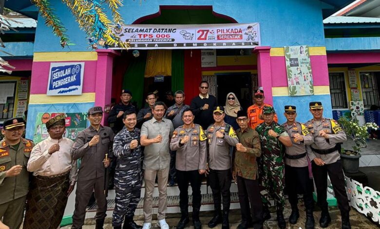 Kepulauan Anambas || Koranprogresif.id, Dalam rangka memastikan keamanan dan ketertiban pelaksanaan Pemilihan Kepala Daerah di Kabupaten Kepulauan Anambas, Danlanal Tarempa Letkol Laut (P) Ari Sukmana, S.E., M.Tr.Opsla., bersama jajaran Forkompimda Kabupaten Kepulauan Anambas melaksanakan peninjauan di tiap-tiap Tempat Pemungutan Suara (TPS) yang berada di Kota Tarempa, Kabupaten Kepulauan Anambas, Rabu (27/11/2024).