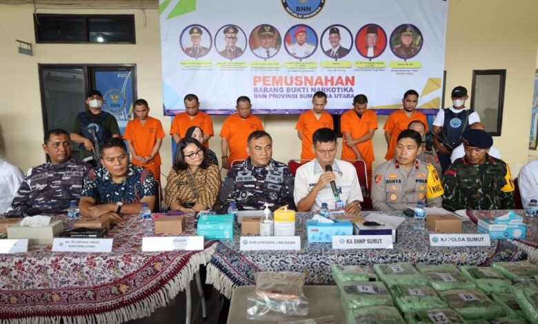 Barang bukti yang dimusnahkan adalah jenis sabu seberat 21.497,6636 Gram. Kepala BNN Provinsi Sumut dalam penjelasannya mengatakan, barang bukti tersebut diantaranya hasil tangkapan Lanal Tanjung Balai Asahan, penangkapan ini berhasil menyelamatkan anak bangsa dari peredaran narkotika sebanyak 172.865 orang.