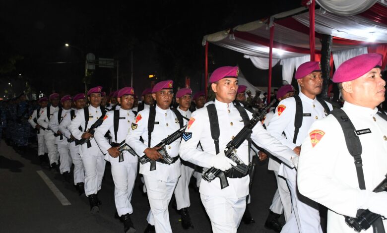 Belawan || Koranprogresif.id, Komandan Pangkalan Utama TNI Angkatan Laut I (Danlantamal I) Brigjen TNI (Mar) Jasiman Purba, S.E., CHRMP., diwakili Wadan Lantamal I Kolonel Laut (P) Siswo Widodo, S.T., bersama Forkopimda Sumatera Utara mengahadiri Upacara Penetapan Waktu (Taptu) dan Pawai Obor dalam rangka menyambut Hari Ulang Tahun Kemerdekaan Republik Indonesia yang Ke-79 Tahun 2024, dipimpin oleh Pj. Gubernur Sumut Agus Fatoni, bertempat di depan Kantor Gubernur Sumatera Utara, Jalan Diponegoro Medan, Sumatera Utara, Jum’at (16/8/2024).