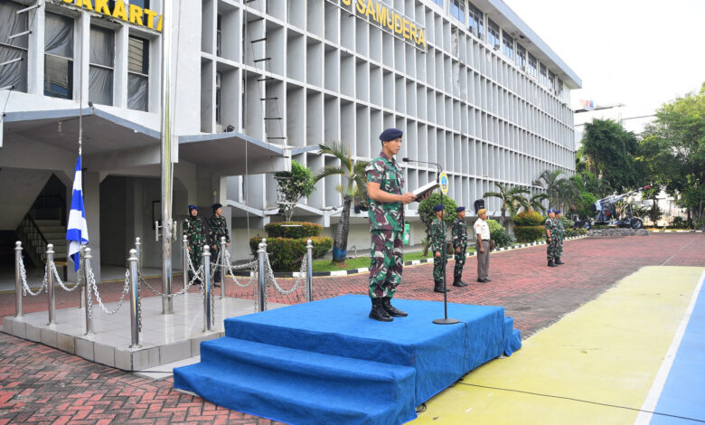 Komandan Lantamal III Laksamana Pertama TNI Uki Prasetia, S.T., M.M. diwakili oleh Kepala Dinas Penerangan (Kadispen) Lantamal III Letkol Laut (K) Hasan Azhari, A.Mk., S.I.Kom. memimpin upacara bendera dan apel gabungan yang dilaksanakan di lapangan apel Mako Lantamal III, Jakarta Utara, Selasa (17/6).