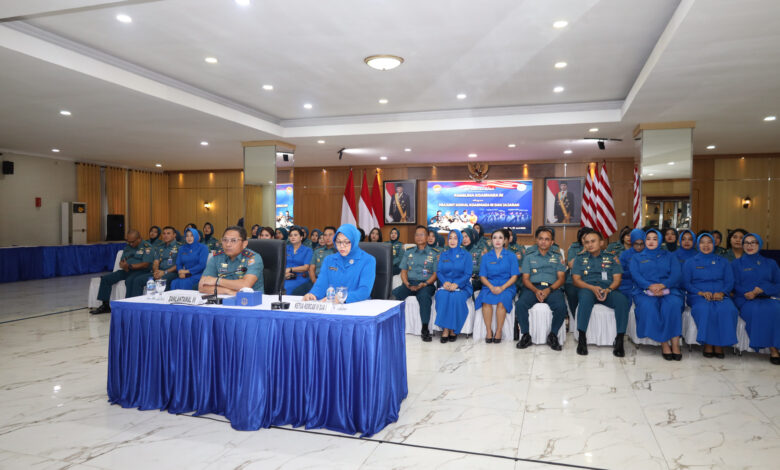 Komandan Lantamal III Laksamana Pertama TNI Uki Prasetia, S.T., M.M. yang didampigi Ketua Koordinator Cabang (Korcab) III Daerah Jalasenastri Armada (DJA) I Ny. Hening Uki Prasetia, mengikuti pembekalan bagi prajurit Korps Wanita TNI Angkatan Laut (Kowal) jajaran Koarmada RI, yang dilaksanakan secara video conference bertempat di gedung serba guna Mako Lantamal III, Jakarta Utara (23/6).