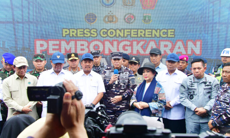 Jakarta || Koranprogresif.id, Komandan Pangkalan Utama TNI Angkatan Laut (Danlantamal) III Jakarta Brigjen TNI (Mar) Harry Indarto, S.E., M.M. memimpin apel gelar pasukan dan material dalam mendukung pembongkaran pagar laut di Tanjung Pasir Tangerang, yang disaksikan langsung oleh Kepala Staf Angkatan Laut (Kasal) Laksamana TNI Dr. Muhammad Ali, S.E., M.M., M.Tr.Opsla., Menteri Kelautan dan Perikanan RI Ir. Sakti Wahyu Trenggono, M.M., dan Menteri Agraria dan Tata Ruang (ATR) RI/Kepala Badan Pertanahan Nasional (BPN) Nusron Wahid, S.S., M.Si., dan Ketua Komisi IV DPR RI Siti Hediati, S.E. bertempat di laut Tanjung Pasir, Tangerang, Banten, Rabu (22/01/2025).