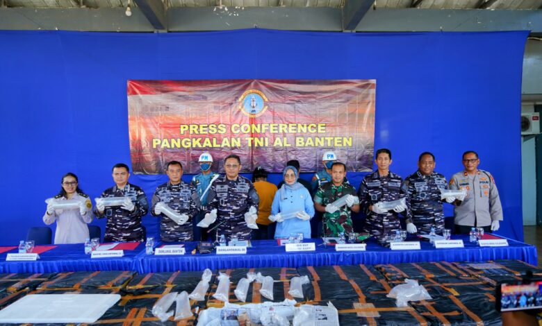 Press conference dilaksanakan dalam rangka penggagalan penyelundupan benih bening lobster (BBL) sebanyak 40 boks styrofoam besar senilai 29,97 miliar oleh TNI Angkatan Laut, dalam hal ini Tim Gabungan Fleet One Quick Response (F1QR) Lanal Banten jajaran Lantamal III Jakarta di Pelabuhan Merak, Banten.