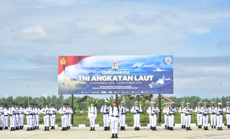 Mempawah || Koranprogresif.id, Lantamal XII,- Komandan Pangkalan Utama TNI Angkatan Laut (Danlantamal) XII Laksamana Pertama TNI Avianto Rooswirawan memimpin upacara peringatan HUT ke-79 TNI Angkatan Laut bertempat di Lapangan Apel Mako Lantamal XII. Jl. Wajok Hilir Km.17 Mempawah Kalbar dan dalam kesempatan tersebut Danlantamal XII membacakan amanat Panglima TNI Jenderal TNI Agus Subiyanto, Selasa (10/09/2024).